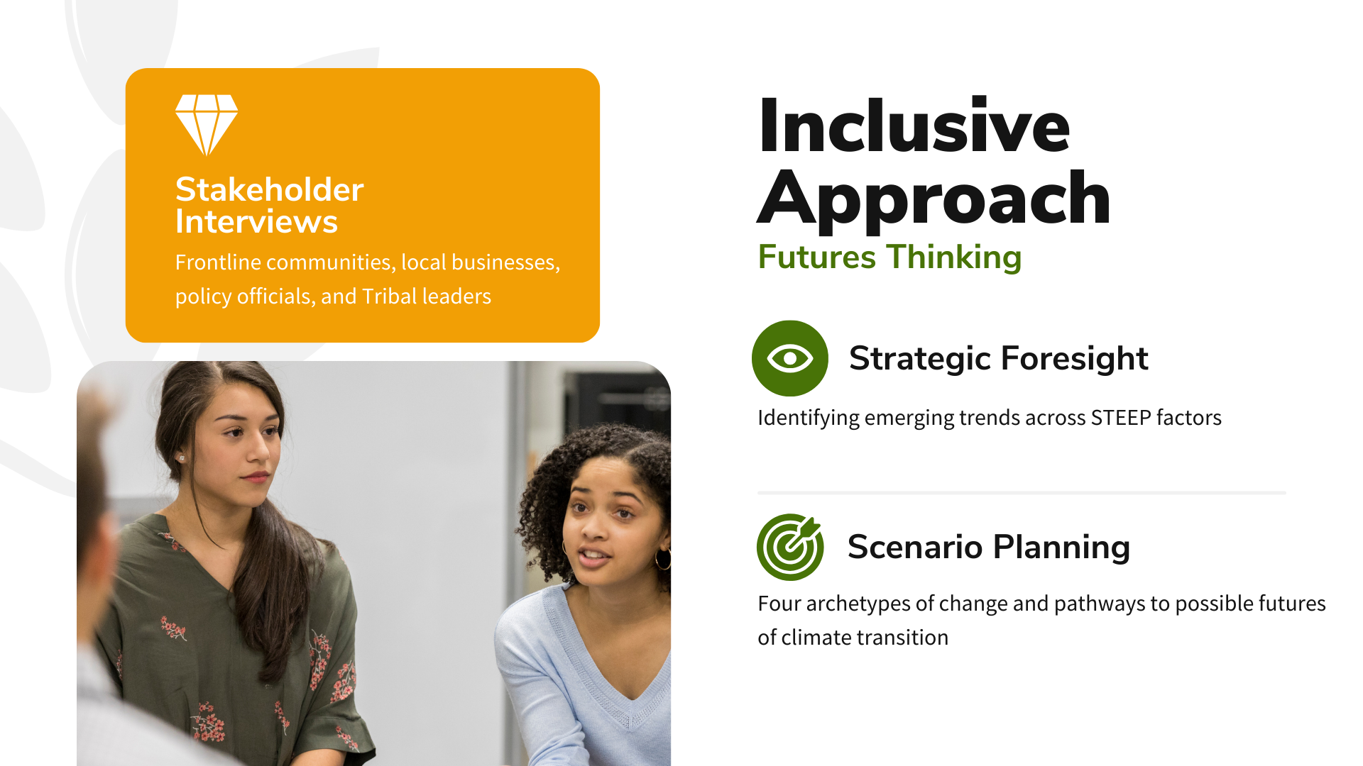 Through enthographic strategic foresight methodologies engaging directly impacted communities, Alija is designing a Participatory Transition Design Toolkit to copower frontline communities, business leaders, and policy officials with futures scenarios from 2050 to inform inclusive decision-making processes.